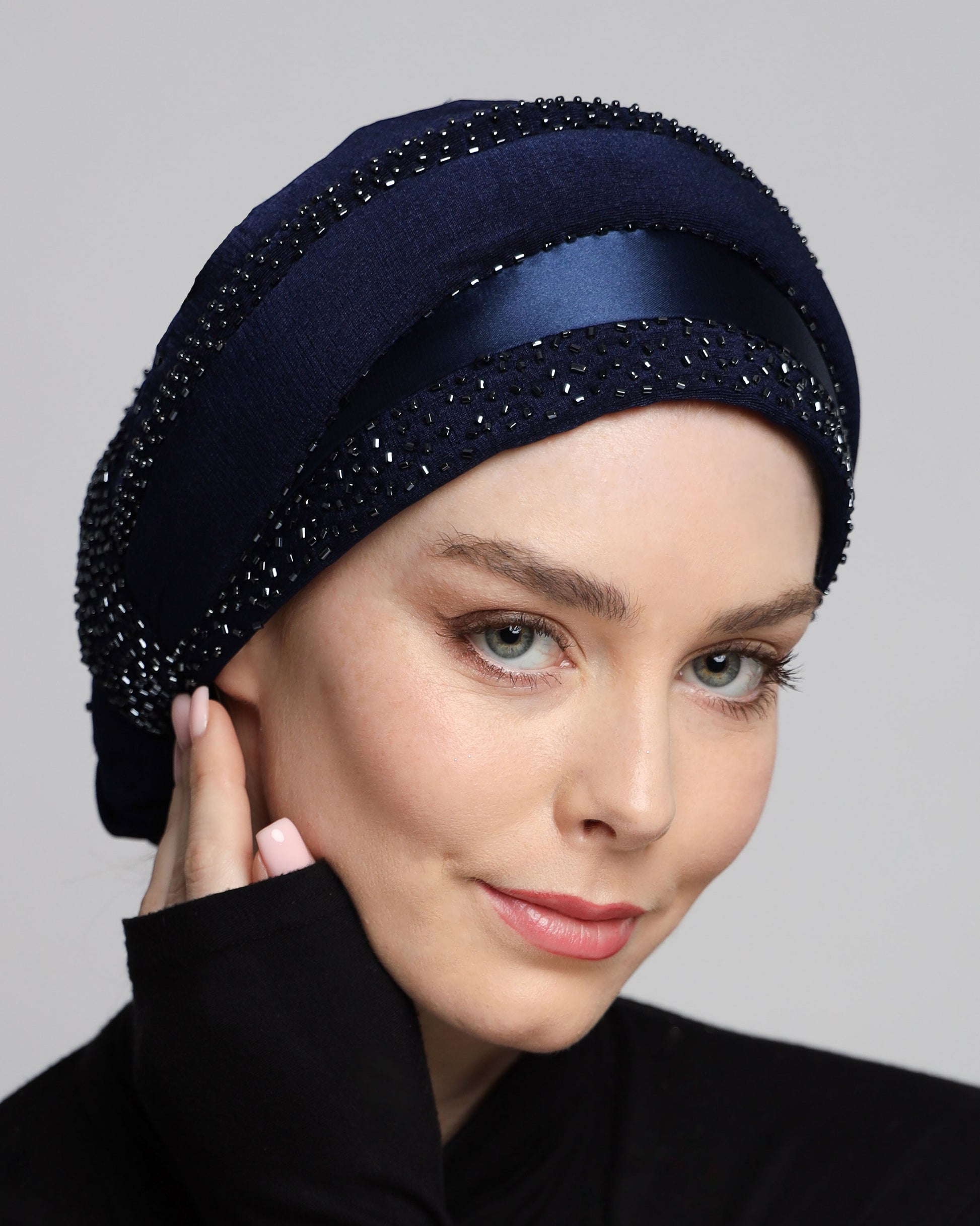 Beading Satin Panel Classic Turban