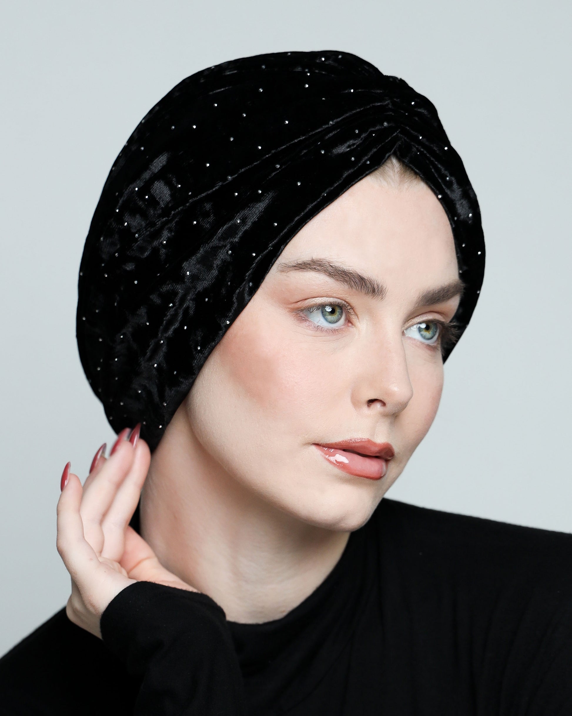 Elevate your look with our Glamorous Velvet Turban. Crafted from velvet and adorned with sparkling crystal embellishments, this turban adds a touch of luxury and sophistication to any outfit. Perfect for a day at the races or a night out on the town, this accessory is a must-have for those seeking a touch of glamour and elegance.