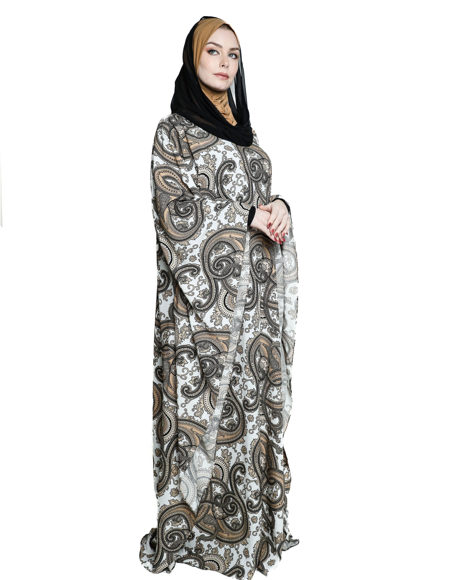 Elevate your wardrobe with our Paisley Print Caftan. Made from luxurious cotton viscos, this elegant caftan allows for comfort and style. The intricate Paisley print adds a touch of sophistication to any occasion. Make a statement with this exclusive piece.