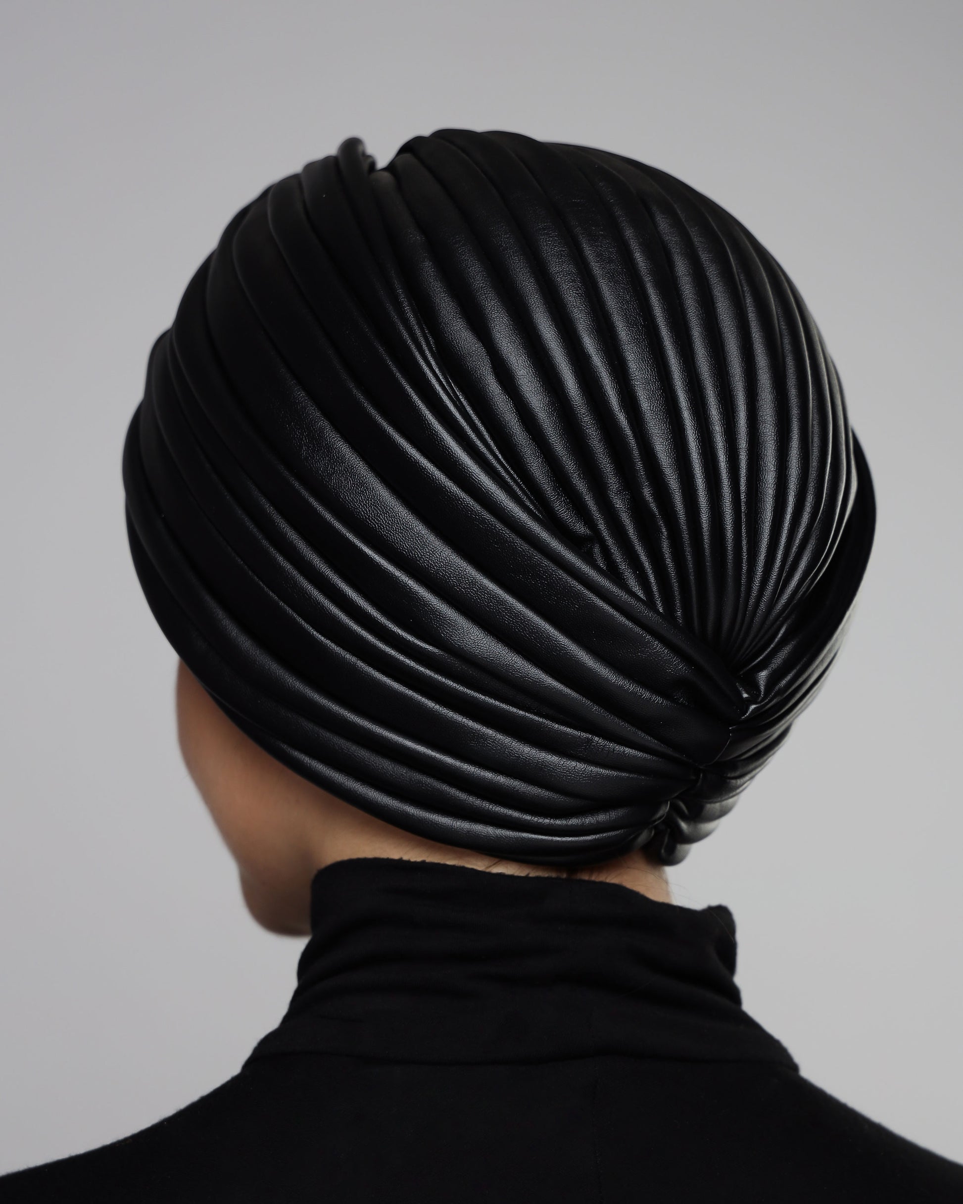 Black Twisted Leather Turban